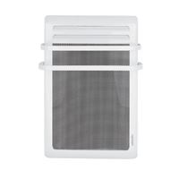Radiateur sèche-serviettes étroit ventilo avec commande déportée programmable et patère incluse.