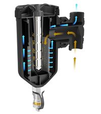 - Permet le dosage des additifs de traitement de l'eau dans le corps du filtre ou via la vanne de vidange (Produit Sentinel Rapid dose)