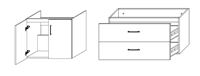 Meuble sous vasque Profondeur 45,7cm Portes à charnières clipsables amorties ou tiroirs avec amortisseur de fermeture Côtés mélaminé...